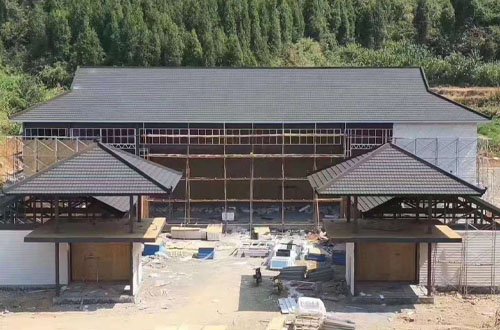 米兰乌炭黑彩石金属瓦打造轻钢别墅四合院